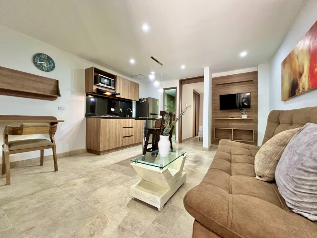 Apartamentos completamente amoblados, con wifi de alta velocidad, cocina equipada y áreas de trabajo cómodas.